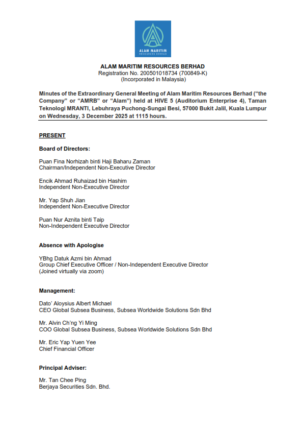 MINUTE OF EXTRAORDINARY GENERAL MEETING